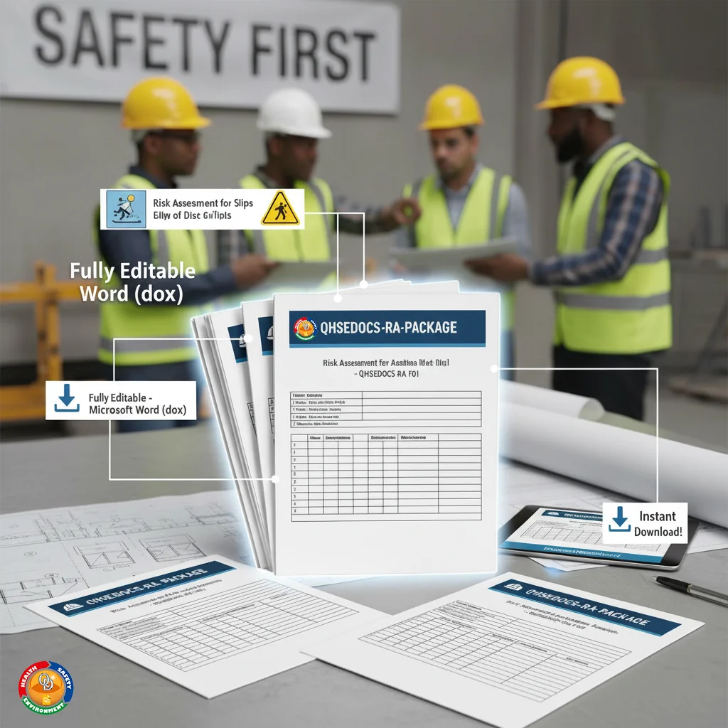 Boost worksite safety & compliance with QHSEDOCS-RA-PACKAGE. Get 25 editable risk assessment templates. Instant download! Looking for more QHSE resources? Don’t miss our IFM QHSE Documents Package for facility management. For a full range of our safety solutions, visit our QHSE Docs homepage!
